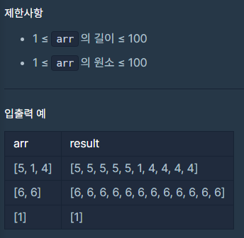 그냥 숫자만큼 arr의 원소들을 뻥튀기하라는 문제다. repeat()를 쓰면 간단하게 풀 수 있다.