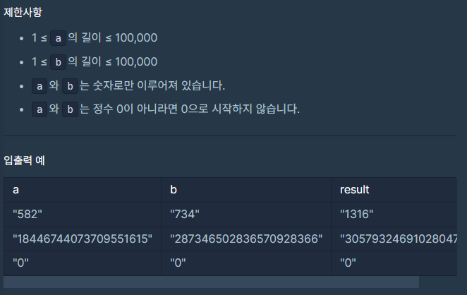 문자열 a, b의 길이가 모두 길기 때문에 BigInteger를 사용해서 풀 수 있다.