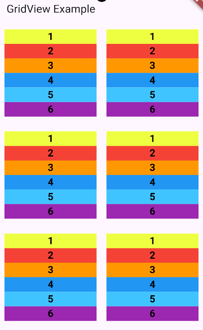 A scrollable, 2D array of widgets. The main axis direction of a grid is the direction in which it scrolls (the scrollDirection). The most commonly used grid layouts are GridView.count, which creates a layout with a fixed number of tiles in the cross axis,