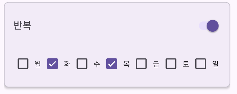 반복 스위치를 on으로 변경하면 아래 UI가 표시된다.
