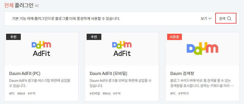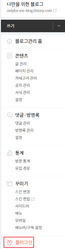 먼저 블로그 관리 페이지에서 플러그인 메뉴를 클릭한다.