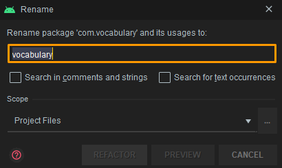 이 상태에서 com 밑의 example 패키지를 클릭해서 선택한다. 사진에선 vocabulary라 돼 있지만 원래는 example이었던 것이다.