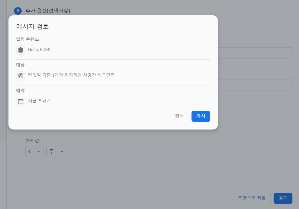 바꿀 거 없다. 이 상태에서 앱을 끄고 다른 화면을 띄워놓거나, 핸드폰을 잠금 화면으로 바꿔놓고 게시를 누르면 알람이 오는 걸 볼 수 있다.
