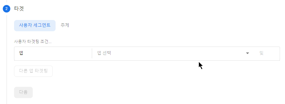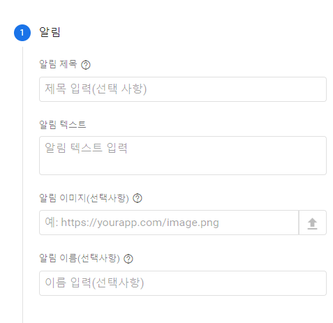 이미지랑 알림 이름은 안 써도 된다. 다 입력했으면 다음을 눌러 타겟 탭으로 이동한다.
