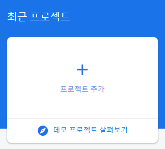 프로젝트 이름을 정하고 구글 애널리틱스 사용 설정을 켠 채 계속을 누른다. 그러면 3분 정도 기다려야 하는데 이후 프로젝트가 하나 만들어진다. 앱 추가를 눌러 안드로이드를 누른다.