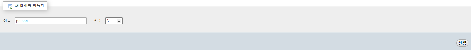 테이블 이름을 넣고 컬럼 수를 정한 뒤 실행을 누르면 테이블의 상세 설정을 할 수 있다.