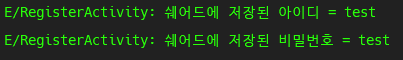 Log.e(TAG, "쉐어드에 저장된 비밀번호 = " + sharedPreference.getString("pw", ""))