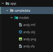 이렇게 설정한 후, 압축해제한 폴더를 보면 app 폴더 안에 sampledata 폴더가 있다. 들어가면 models 폴더가 있고 그 안에 4개의 파일들이 있다.