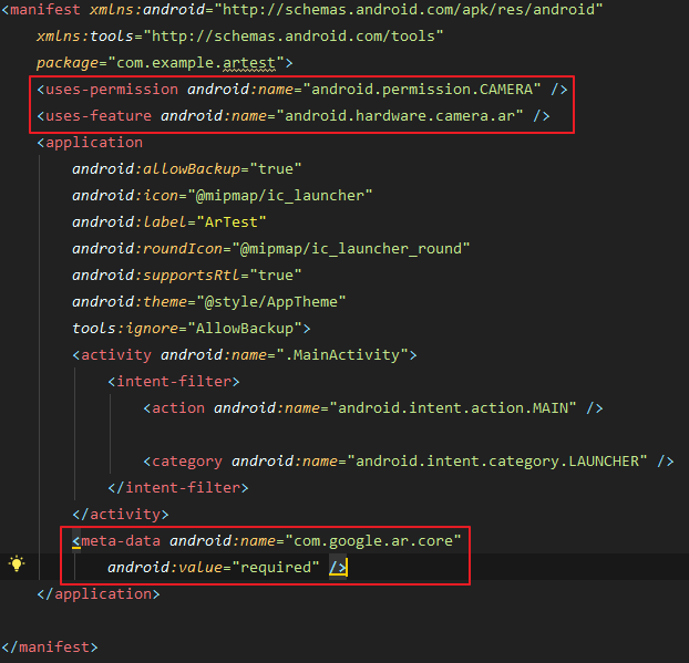 <meta-data android:name="com.google.ar.core" android:value="required" />
