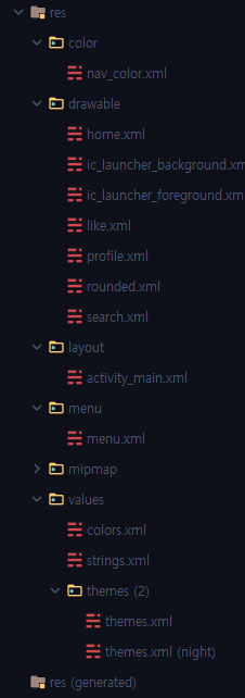 최종적인 res 폴더 구조는 아래와 같다. 이제 하나씩 만들 것이다.
