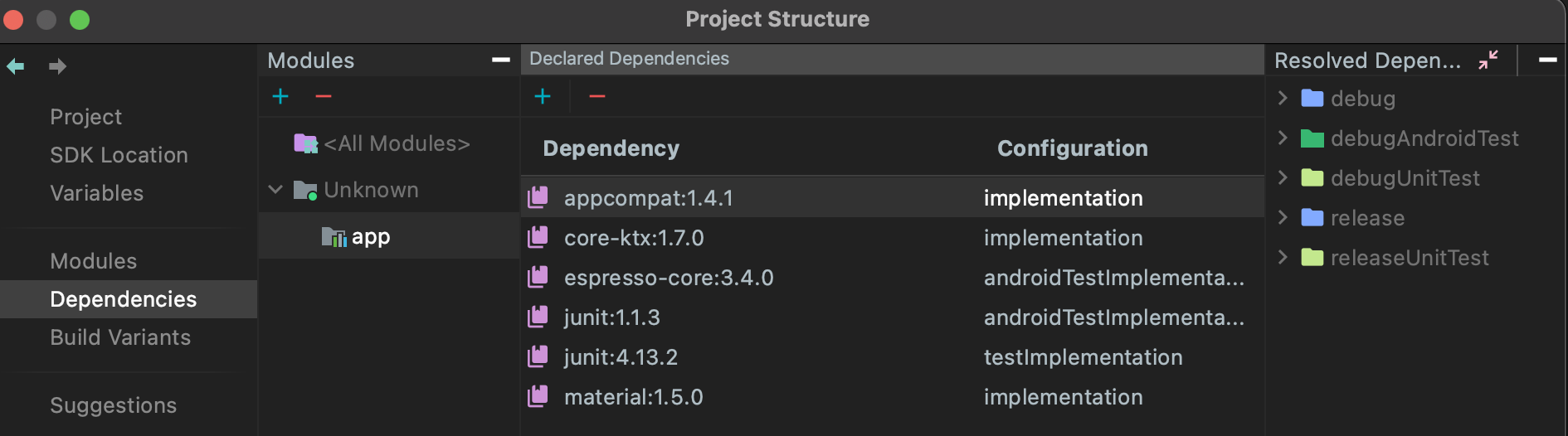 androidTestImplementation 'androidx.test.espresso:espresso-core:3.4.0'