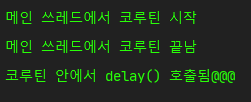 - 메인 쓰레드의 로그 2개가 모두 출력된 다음에야 delay()가 호출되는 건 왜인가?