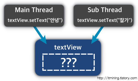 안드로이드 안에서 병렬 처리로 돌아가는 메인과 서브 쓰레드에서 같은 textview를 setText()했을 때 어떤 쓰레드의 명령을 따라야 하나?