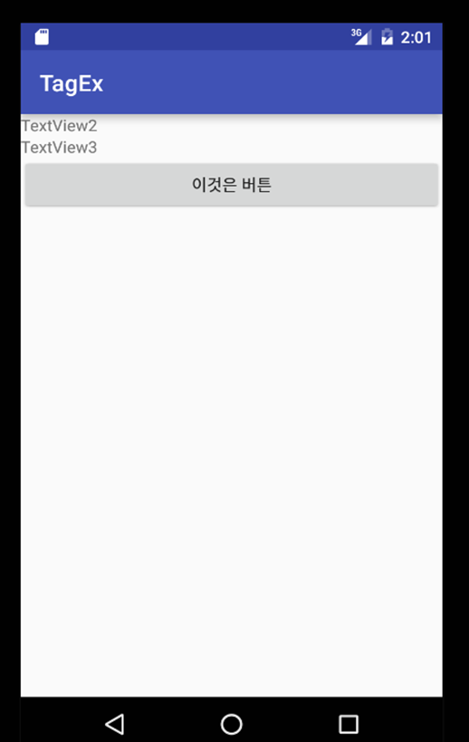 태그는 동적으로 뷰를 생성할 때 많이 쓰므로 동적으로 텍스트뷰와 버튼을 쓰는 예시를 들어보겠다.