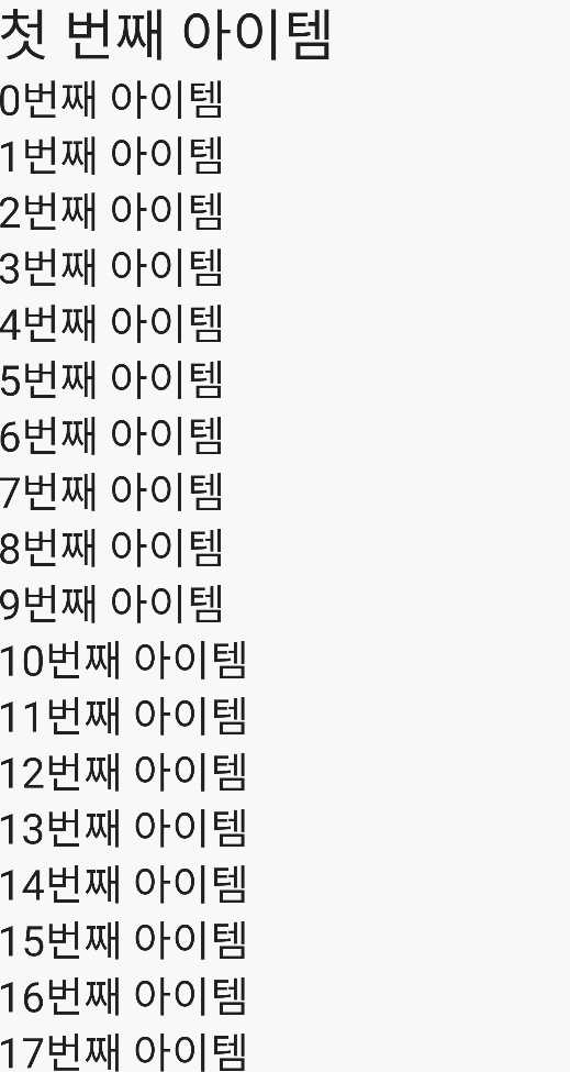 - reverseLayout : 스크롤, 레이아웃 방향을 반대로 뒤집는 프로퍼티. true면 아이템들이 역순으로 배치된다