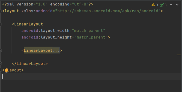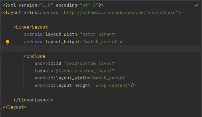 기본 레이아웃이 여러 레이아웃에서 2개의 연속 뷰를 재사용할 수 있는 수직 리니어 레이아웃이라면 재사용 가능한 레이아웃엔 자체 루트 뷰가 필요하다. 그러나 다른 리니어 레이아웃을 재사용 가능한 루트 뷰로써 사용한다면 수직 리니어 레이아웃 안에 수직 리니어 레이아웃이 만들어진다.