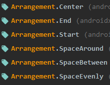 Row의 인자 중 가로 배치를 결정하는 Arrangement가 있는데 이것으로 호출할 수 있는 옵션은 6개 있다.
