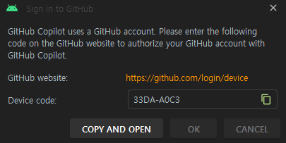 이걸로 코파일럿과 안드로이드 스튜디오 연동은 완료됐다. 이제 코파일럿을 쓸 수 있다.