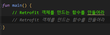 레트로핏 인스턴스를 리턴하는 함수를 만들고 싶다고 가정한다. 그럼 주석으로 아래와 같이 입력한다.