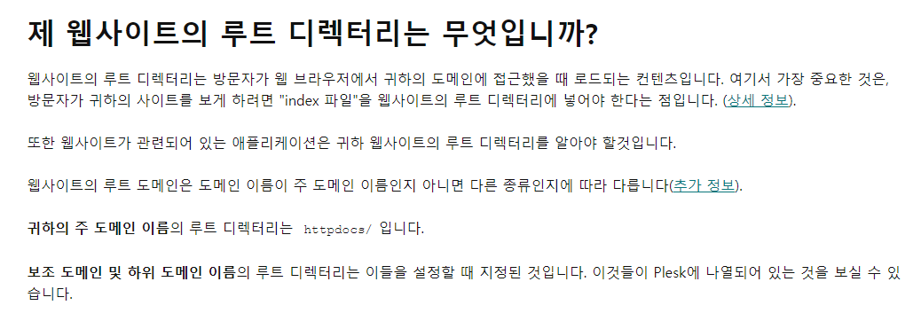 ※ 웹 루트 디렉토리 : https://kr.godaddy.com/help/what-is-my-websites-root-directory-in-plesk-hosting-16191 참고