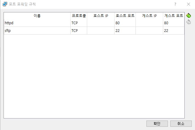 그 다음 버추얼박스의 센토스를 우클릭해서 설정 -> 네트워크 -> 어댑터 1 탭의 고급 클릭 시 포트 포워딩 버튼이 나온다. 눌러라.