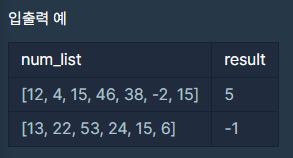 또한 음수가 없다면 -1을 리턴해야 하기 때문에 아래와 같이 작성할 수 있다.
